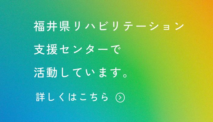 高次脳機能障害者の日常生活並びに社会生活のサポートを総合的に行っております。またサポートする側(例えば勤務先の事業主さま等)のご相談も承っております。福井県における高次脳機能障害者への支援の均霑化を目指し啓蒙活動等を積極的に行っています。