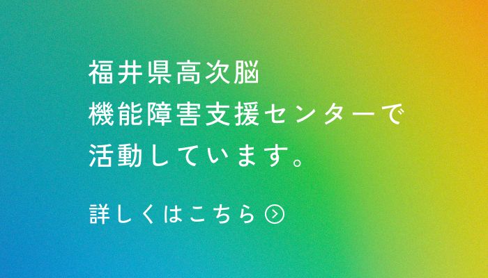 高次脳機能障害者の日常生活並びに社会生活のサポートを総合的に行っております。またサポートする側(例えば勤務先の事業主さま等)のご相談も承っております。福井県における高次脳機能障害者への支援の均霑化を目指し啓蒙活動等を積極的に行っています。